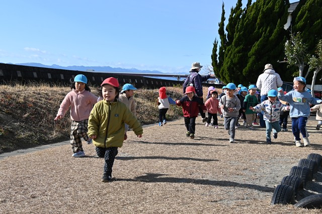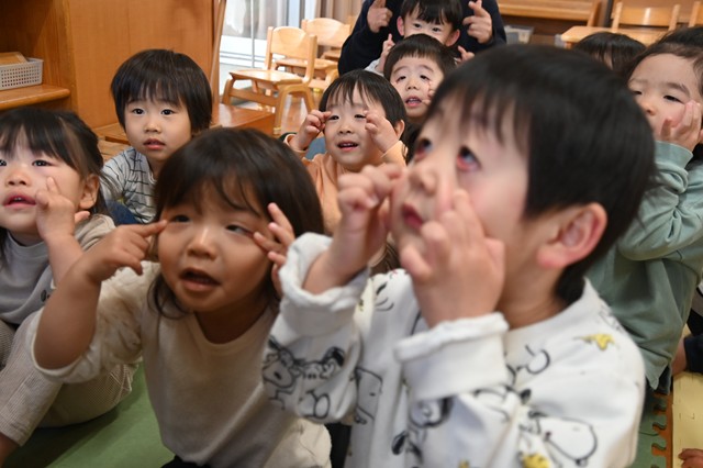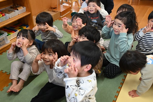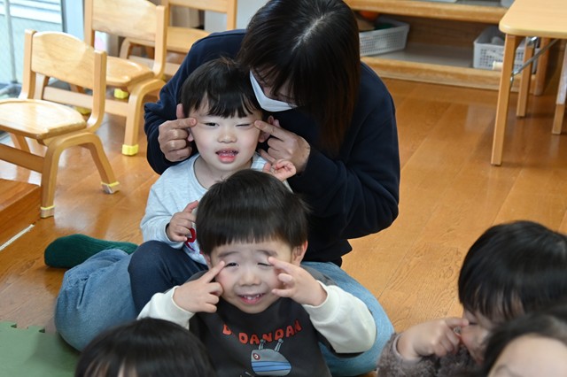 うさぎ組(2歳児)は、ぱんだ組ときりん組(3歳児)と