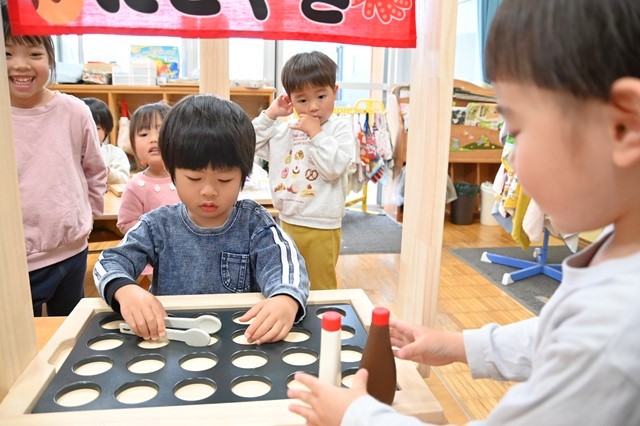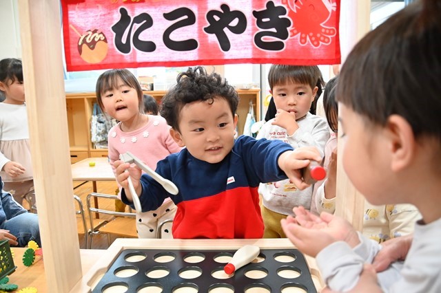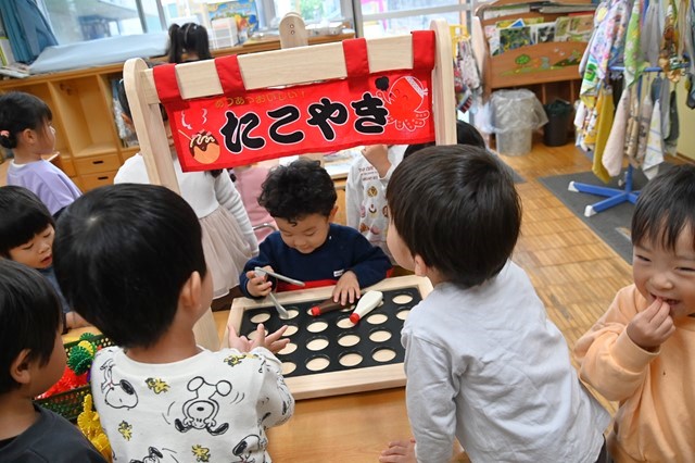 ぱんだ組ではごっこ遊びの中でたこ焼き屋さんを開店しました🐙