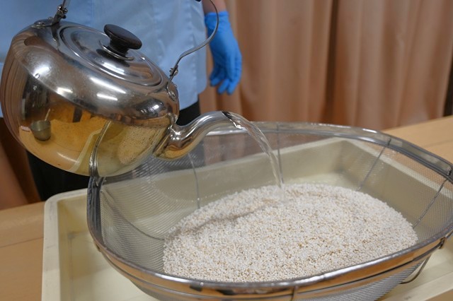 お餅つきの前に もち米を洗いました