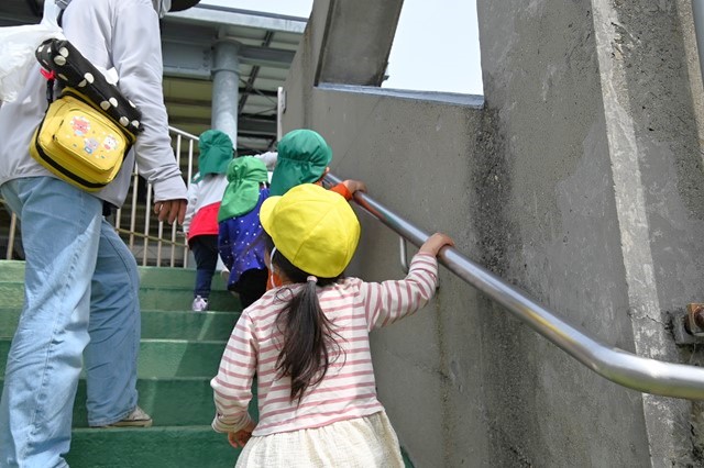 階段はしっかり手すりをもってあがるよ~