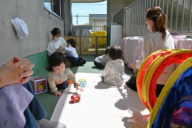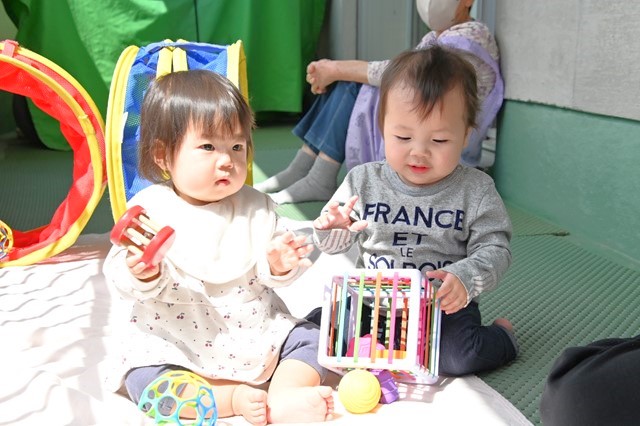 あひる組(0歳)はテラスで遊びましたよ‼️