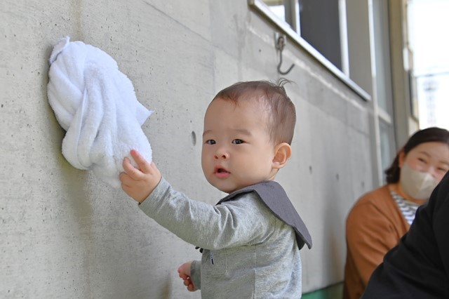 いろんなものに興味が出てきたね! タオルはふわふわかな❓