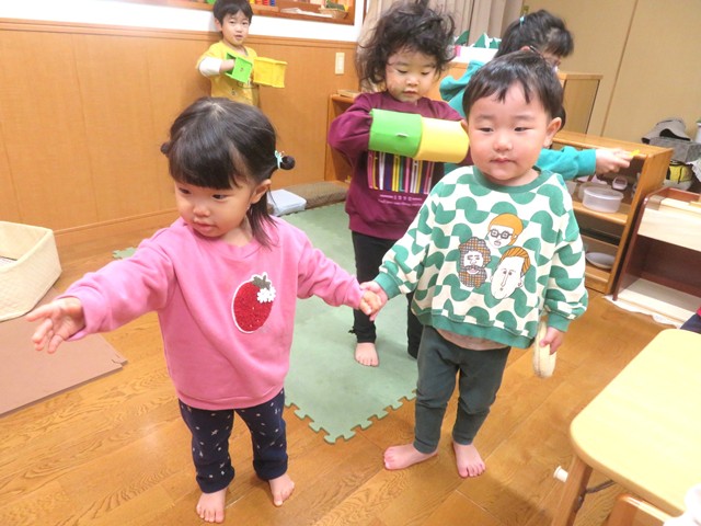 今日は給食室から 根菜のカレー煮の美味しそうな匂いが 保育室にも届いてきて