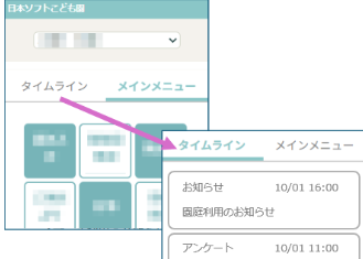 キッズビューアプリ 【新機能】 アプリトップページで、お知らせの新着一覧が タイムライン表示されるようになりました。 便利な機能なので、ご利用ください