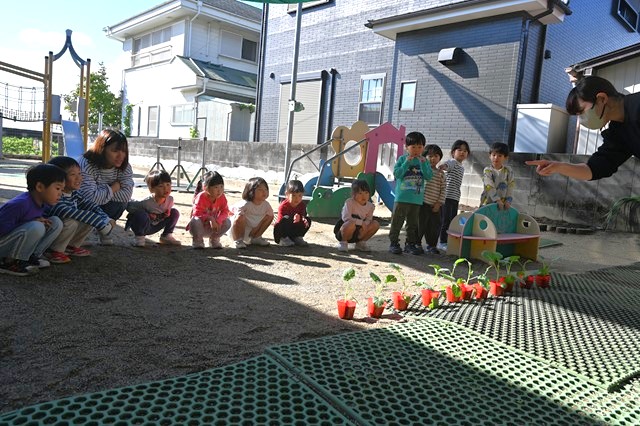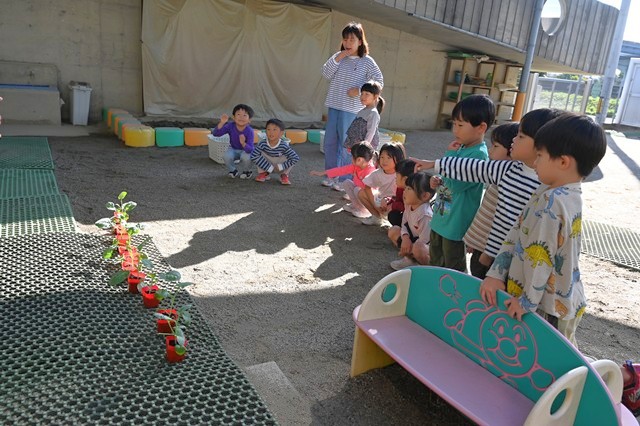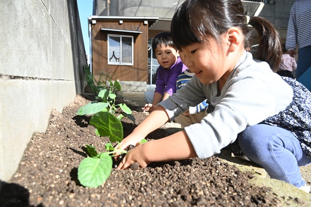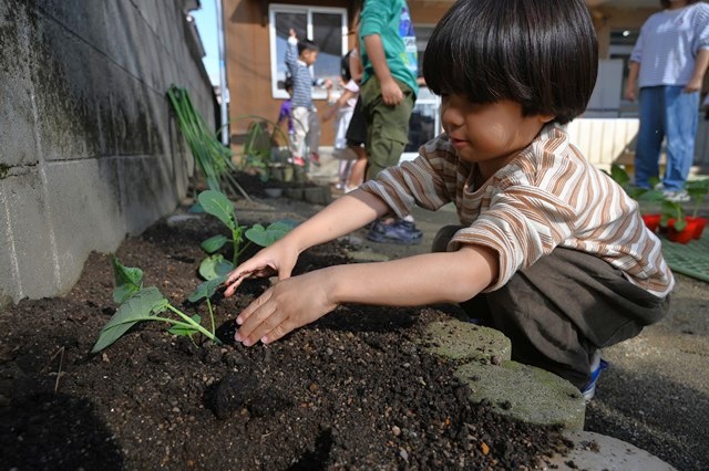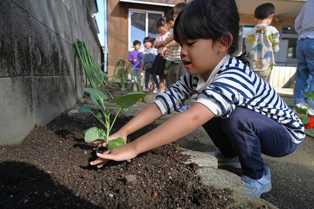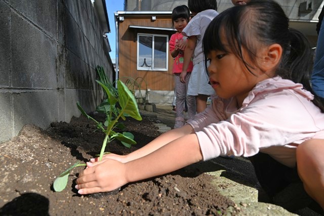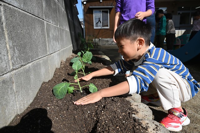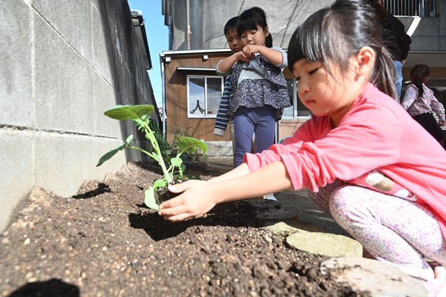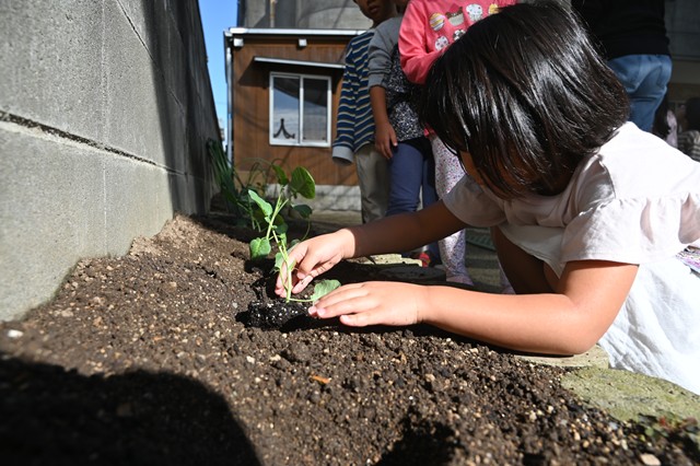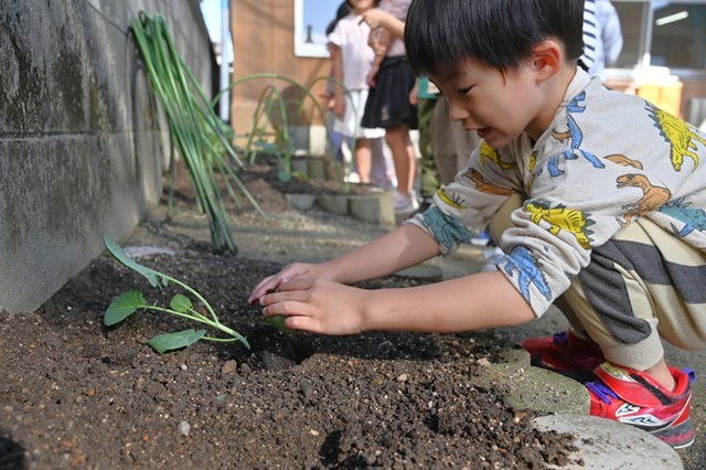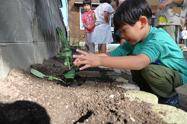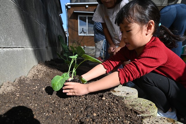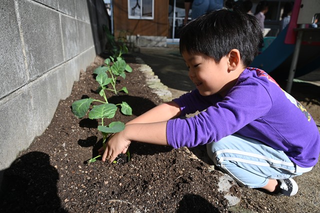 きりん組4歳児が、 園庭の菜園に ブロッコリーの苗植えにチャレンジ🌱