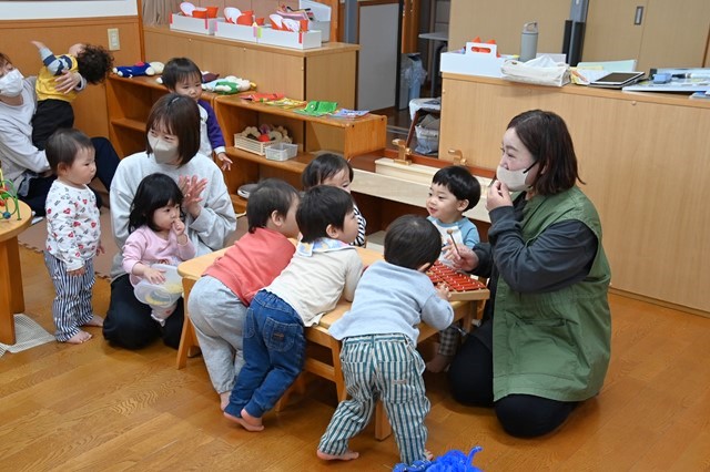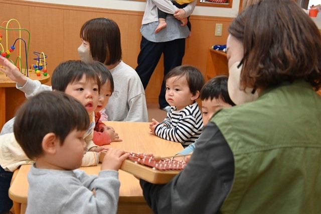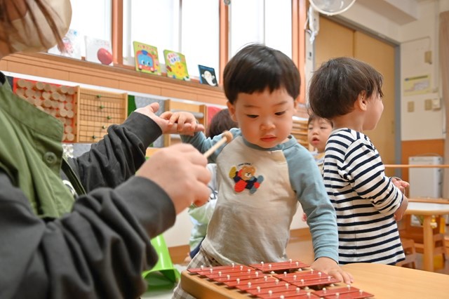 保育士の鉄琴にあわせてお歌をうたったりして遊びました❤️