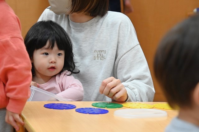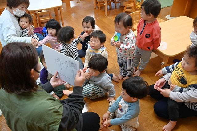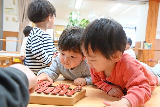 あひる組1歳はお部屋で主体遊びをしたり