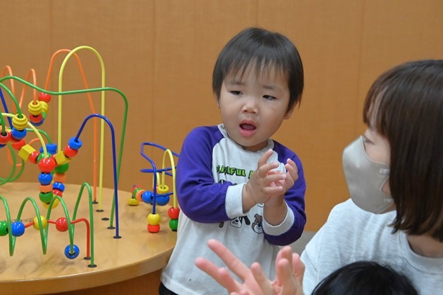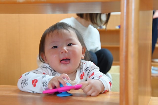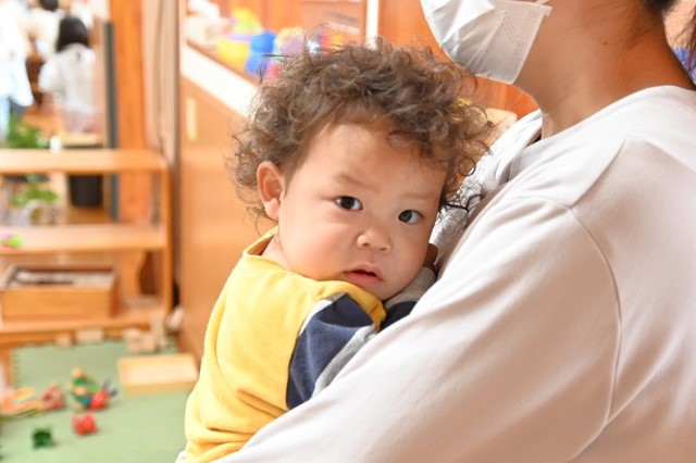 はやくはやく!と保育士にリクエストしてます😉