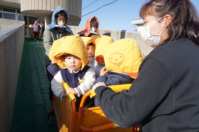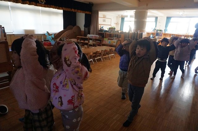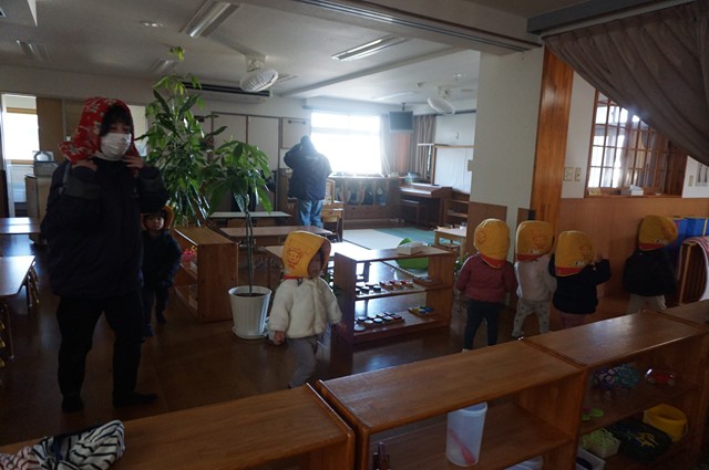 311.の日を前に、保育園でも 地震避難訓練を実施しました。