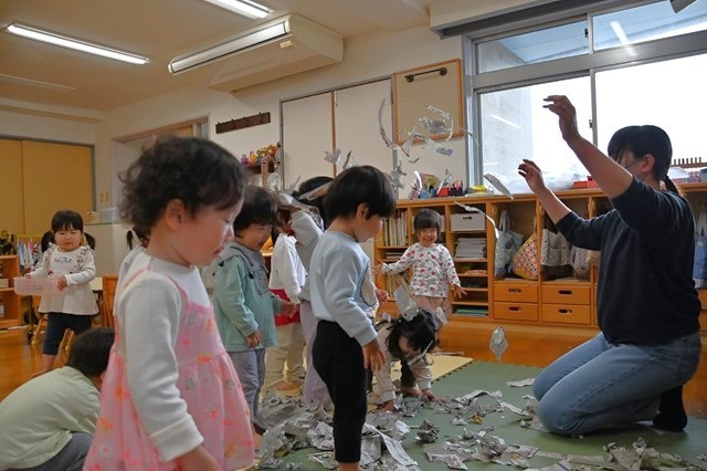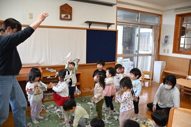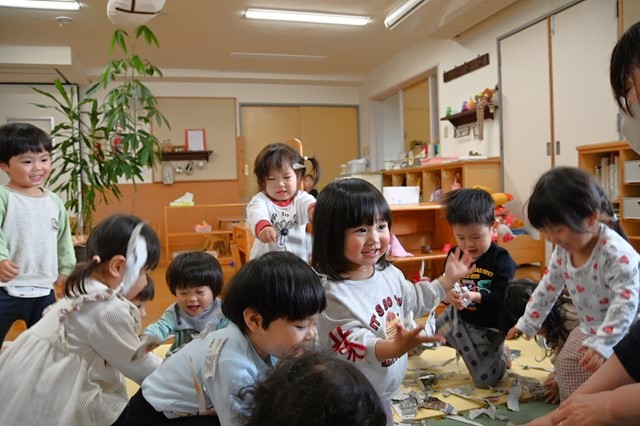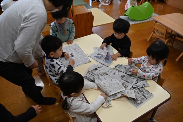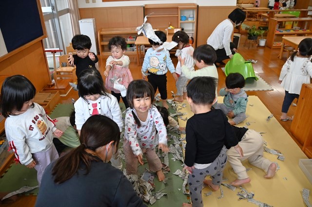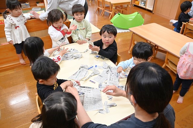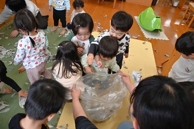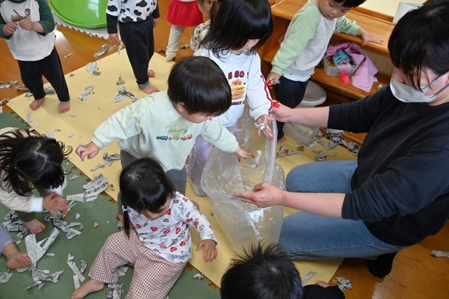 最後はみんなでちぎった新聞紙をひろげて~