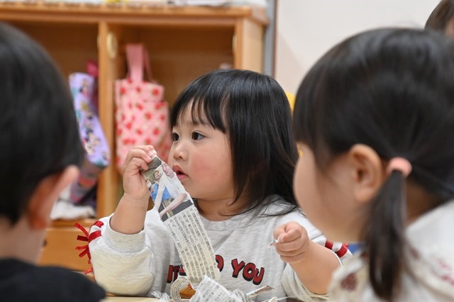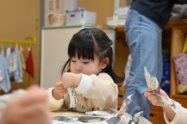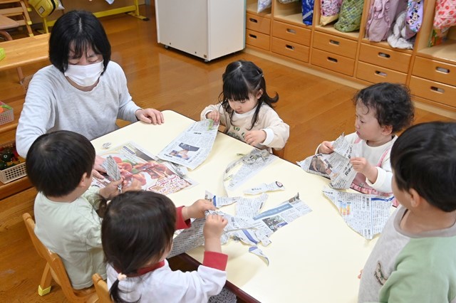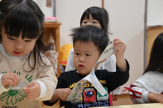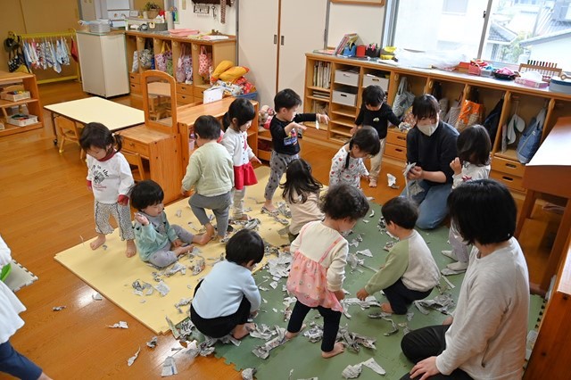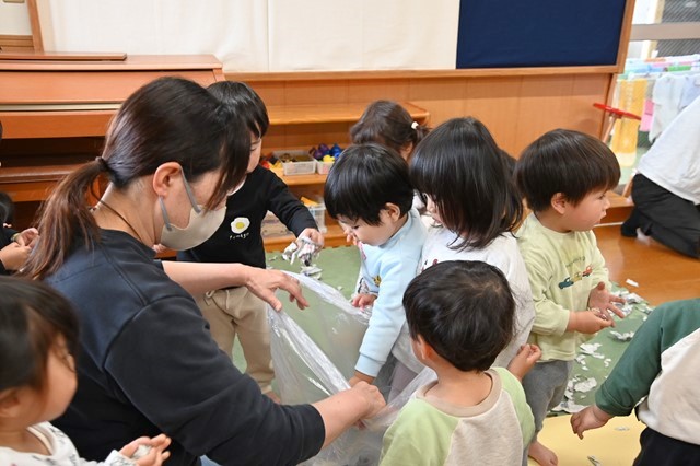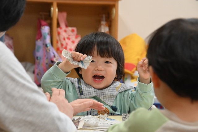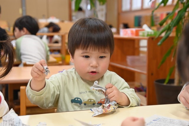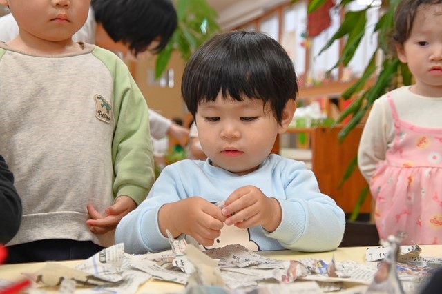 みんな大きくちぎったり小さくちぎったり、ビリビリする音や手触りを楽しんでました😊