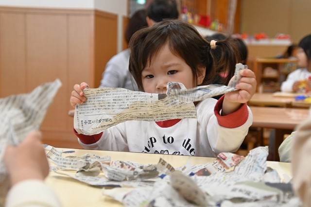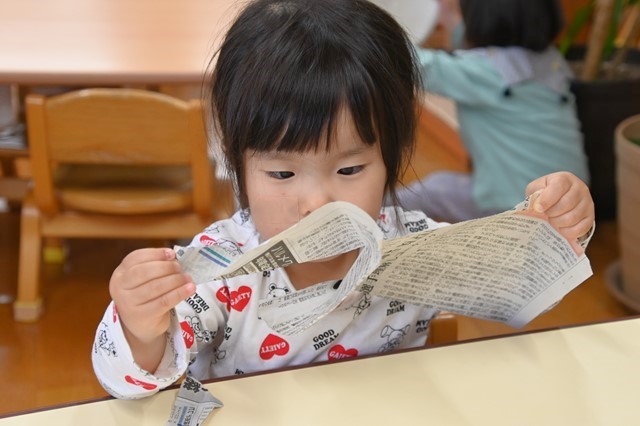 さてさて今日は新聞を使ってなにやら遊んでるよ👀