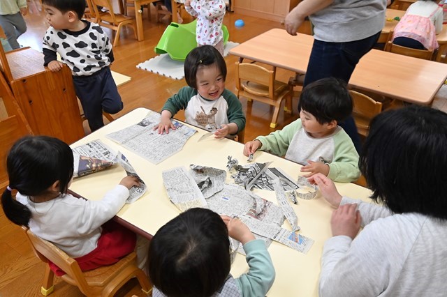 お部屋で主体遊びや新聞を使って遊びを楽しみました🎵
