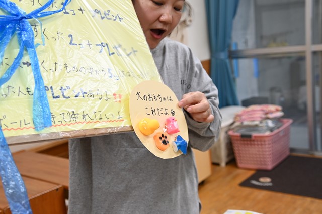 明日のみどりまつりのくじびきやおもちゃすくいの景品をちょっと見せに来てくれました✨