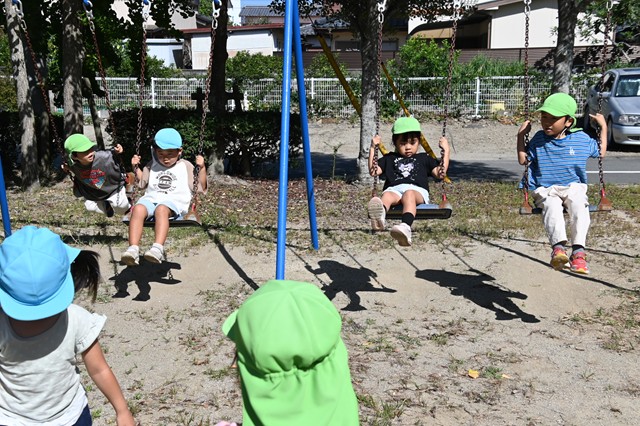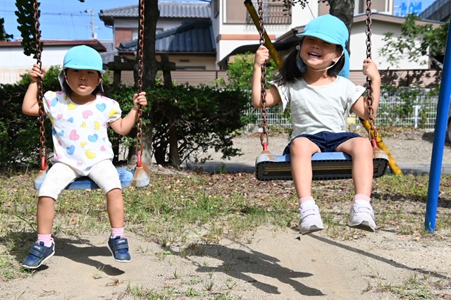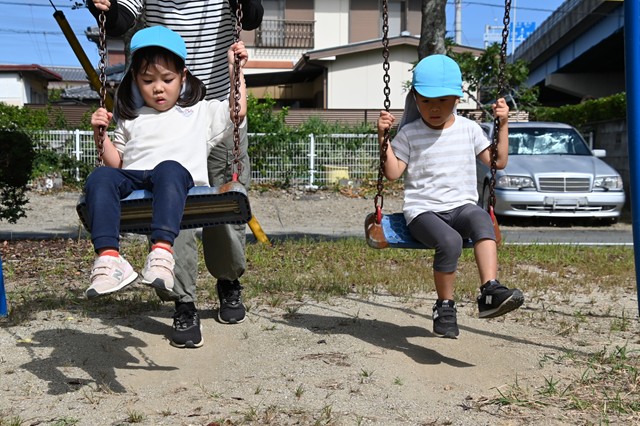 ブランコの順番待ち 1・2・3… 交替を待ちますよ