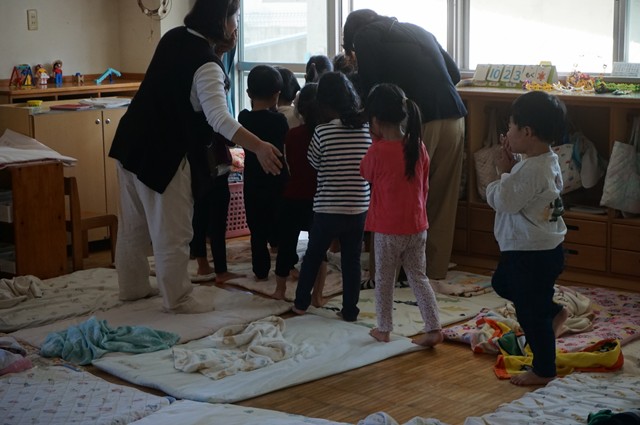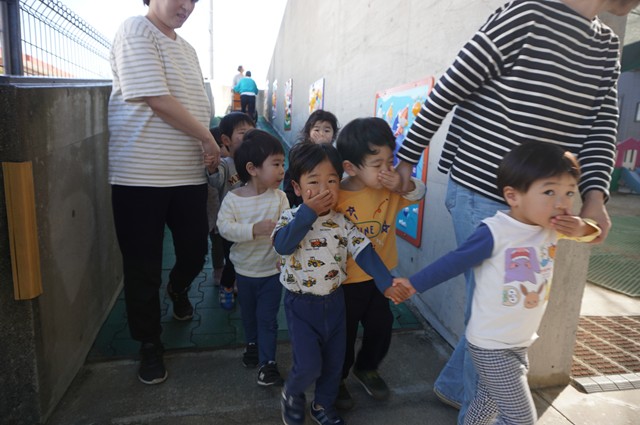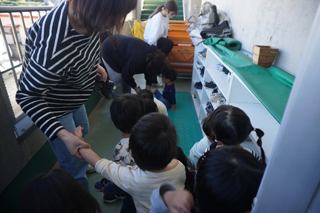 2歳児うさぎ組とぱんだ組一時保育も避難開始