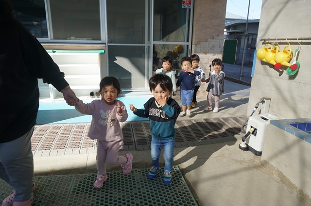 きりん組 すぐに起きてお外へ向かいます