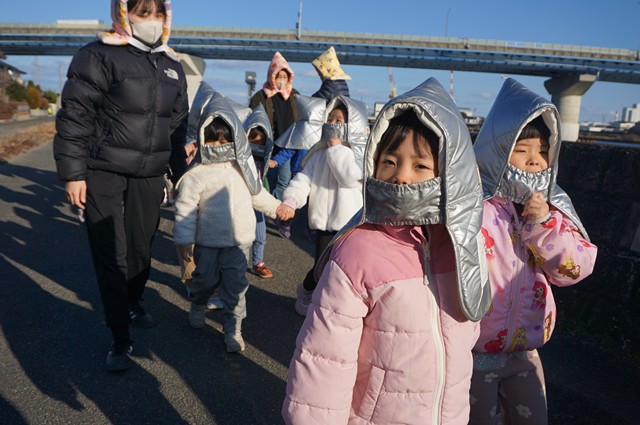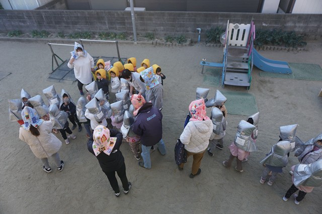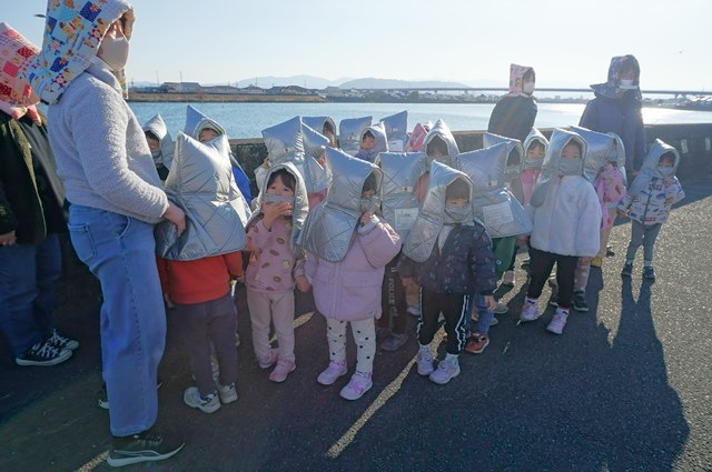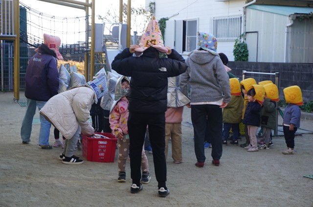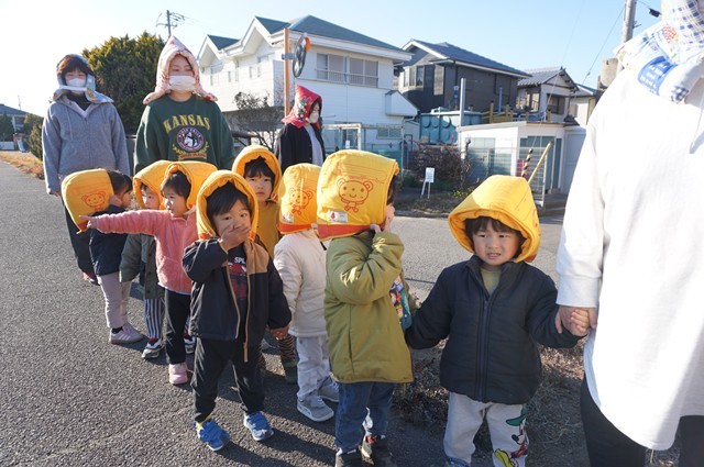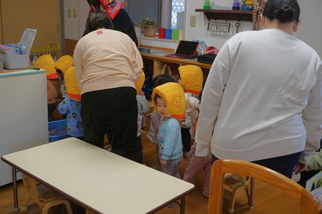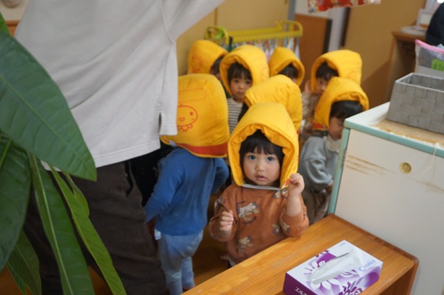 防災頭巾を被って避難開始👉