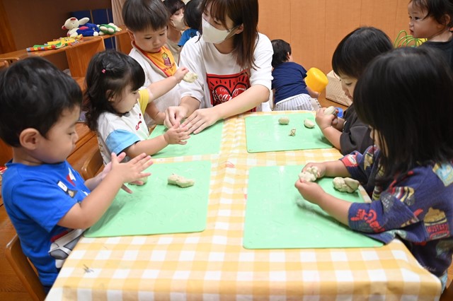 手のひらや指先を使ってこねて丸めたり潰したりちいさくちぎって楽しみます💓