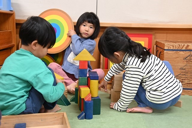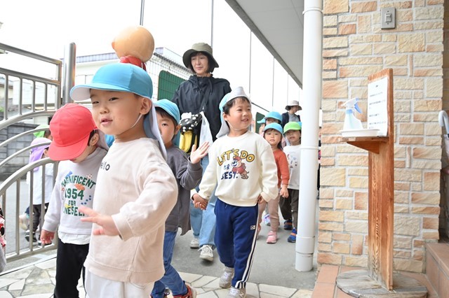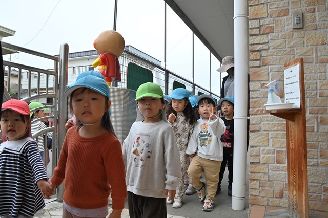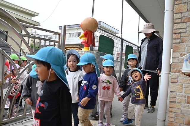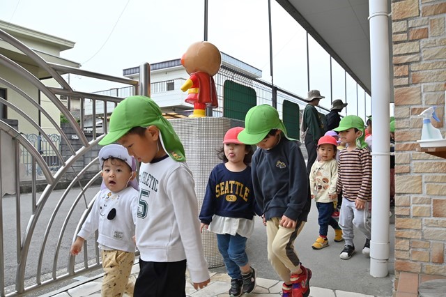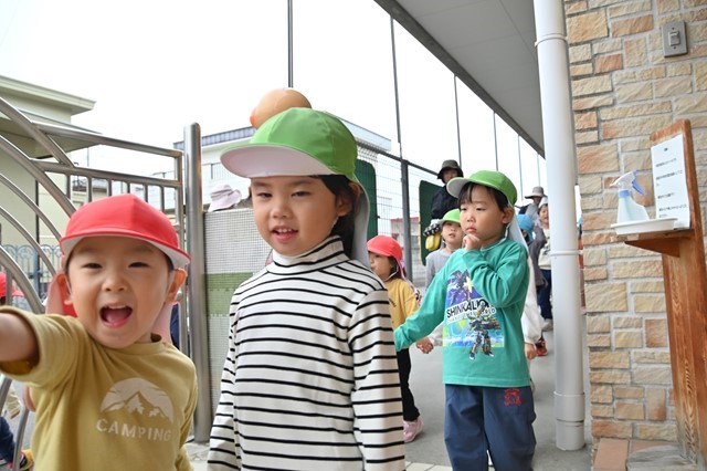 うさぎ組、ぱんだ組と手をつないで一緒に公園遊びへ😊