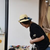 少し雨になりましたね☔ いよいよ明日は、運動会です。 よろしくお願いいたします。 きりん組も雨になったということで、1Fで 最後の練習を楽しんでいました。 すると… なんだろ? おもしろいかっこうをしている …